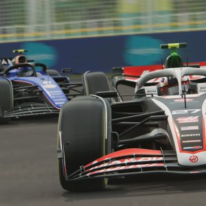 All cars’ antennas move when accelerating and cornering, affected by G-forces. Front and rear wings also shake and deform when going through bumps or at high speeds.
